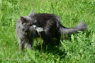 Xénon est un garçon dynamique, une vraie pile. Il ne tient pas en place, n'a pas peur de l'aspirateur, il ronronne même. Il est très câlin, aime se faire coiffer, très curieux, sûr de lui, il est dominant, il s'entend bien avec Etti qui est très calme. Un regard sauvage et franc, il est à l'aise avec les filles, même si elle est plus grande que lui. Il ne craint rien . Il est très doux avec nous c'est un amour de chat. Je remercie Margarita de m'avoir confié son bébé..